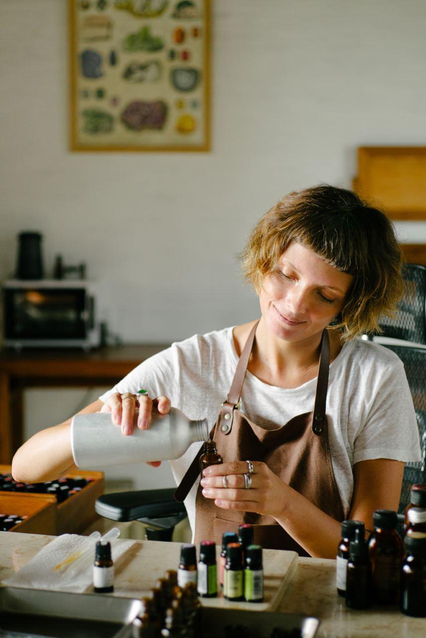 Jiwa dan tangan OiLand. Semua dana, mulai dari resep resep hingga tetes terakhir, dibuat oleh Nastya dengan tangan di pulau ajaib Bali.